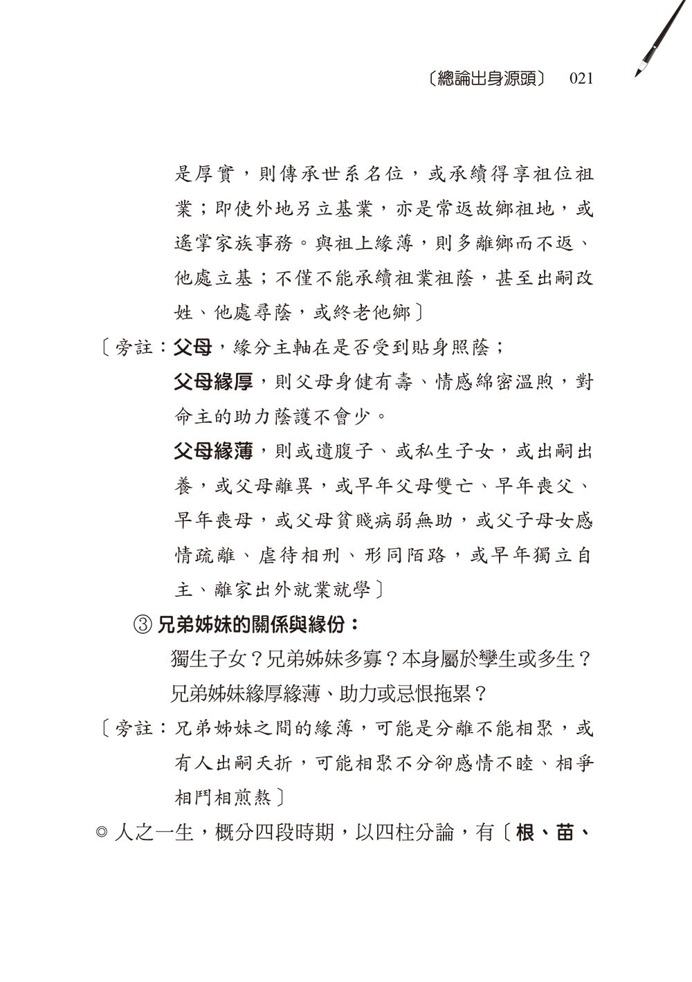 〔旁註: 一個人出生後,是富家子弟,還是孤苦伶仃,抑或過養重親,在原局年月兩柱中已有跡可尋;至於什麼時候應驗,則看流年與大運來決定〕