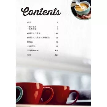 本書的基礎入門,涵蓋了從愛心到鬱金香等多款創意造型,將同樣一種技巧變化運用,你也能入門咖啡拉花的世界!
