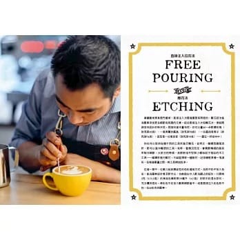 既複雜又高技術性的藝術拉花,結合本書所教授的多種技法,為你揭開連續六屆獲得英國拿鐵拉花冠軍的作者,得獎背後的技術秘辛,除了透過步驟演練外,了解製作的同時也可以一併掌握咖啡拉花的設計要領,透過隨心所欲加入或減少細節,則可以讓你的圖案根據不同場合,達到更理想的效果!