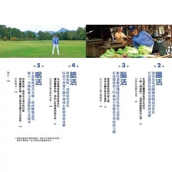 為了增進相關訓練法與運動模式的新鮮度與多樣化,並且從更多元的層面來因應年齡增長後可能會面臨的各種老化問題,鎌田醫師以簡單易懂的方式,將「5個領域」的健康法則整理成一套綜合養生術,協助逐步邁入高齡人生的各位輕鬆跨越老化問題所築起的高牆。