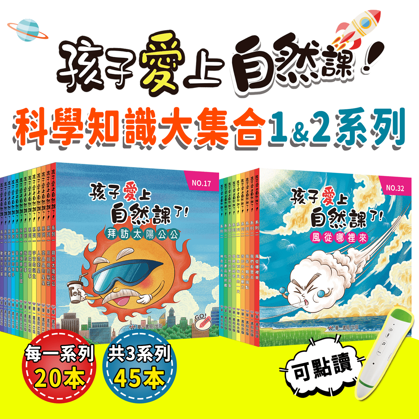 系列1(20本), 系列1&2(40本), 植物主題5本, 動物主題5本, 昆蟲主題5本, 天文主題5本, 魚類主題5本, 物理主題5本, 天氣主題5本, 化學主題5本, 身體主題5本, 系列一+二+身體主題5本(45本)